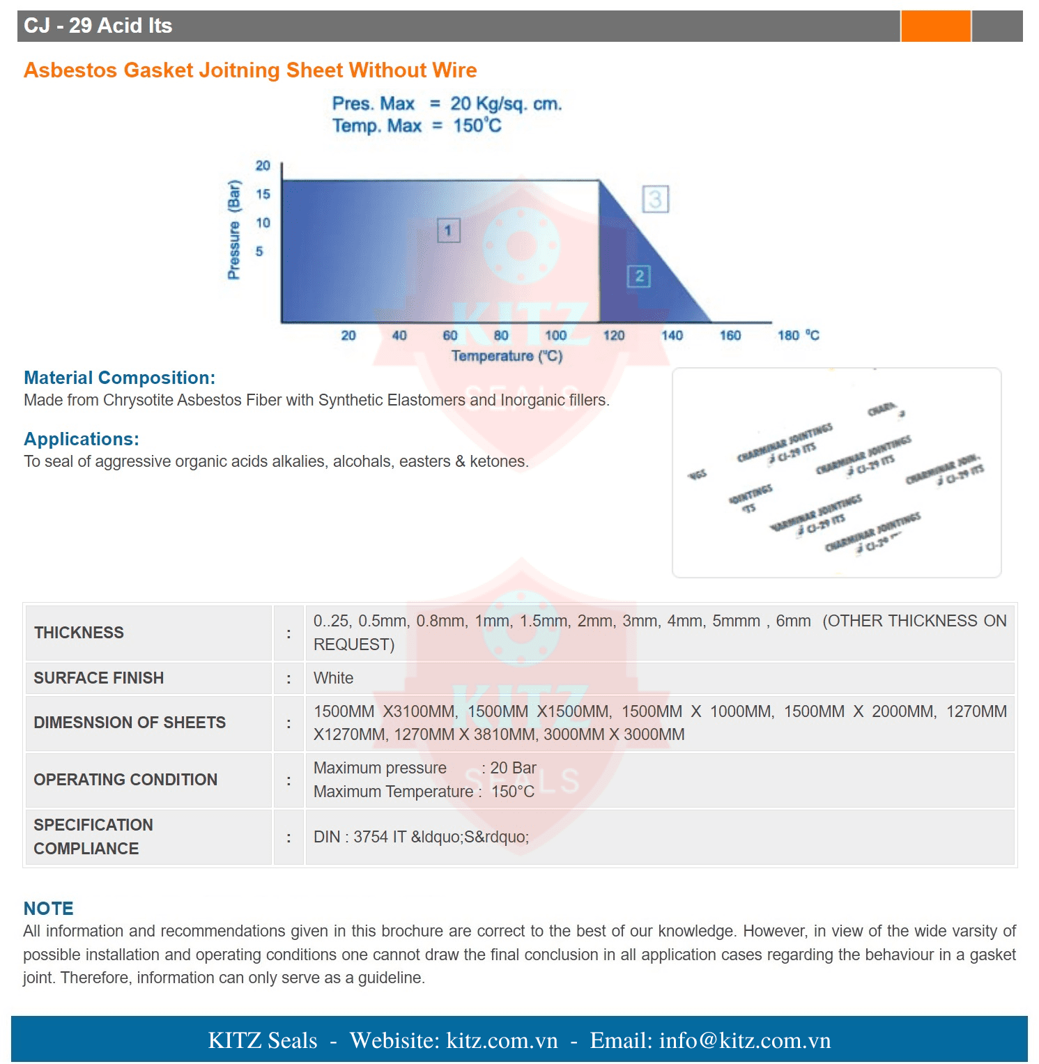 Gioăng Amiang Chịu Axit Ấn Độ: CJ - 29 Acid Its