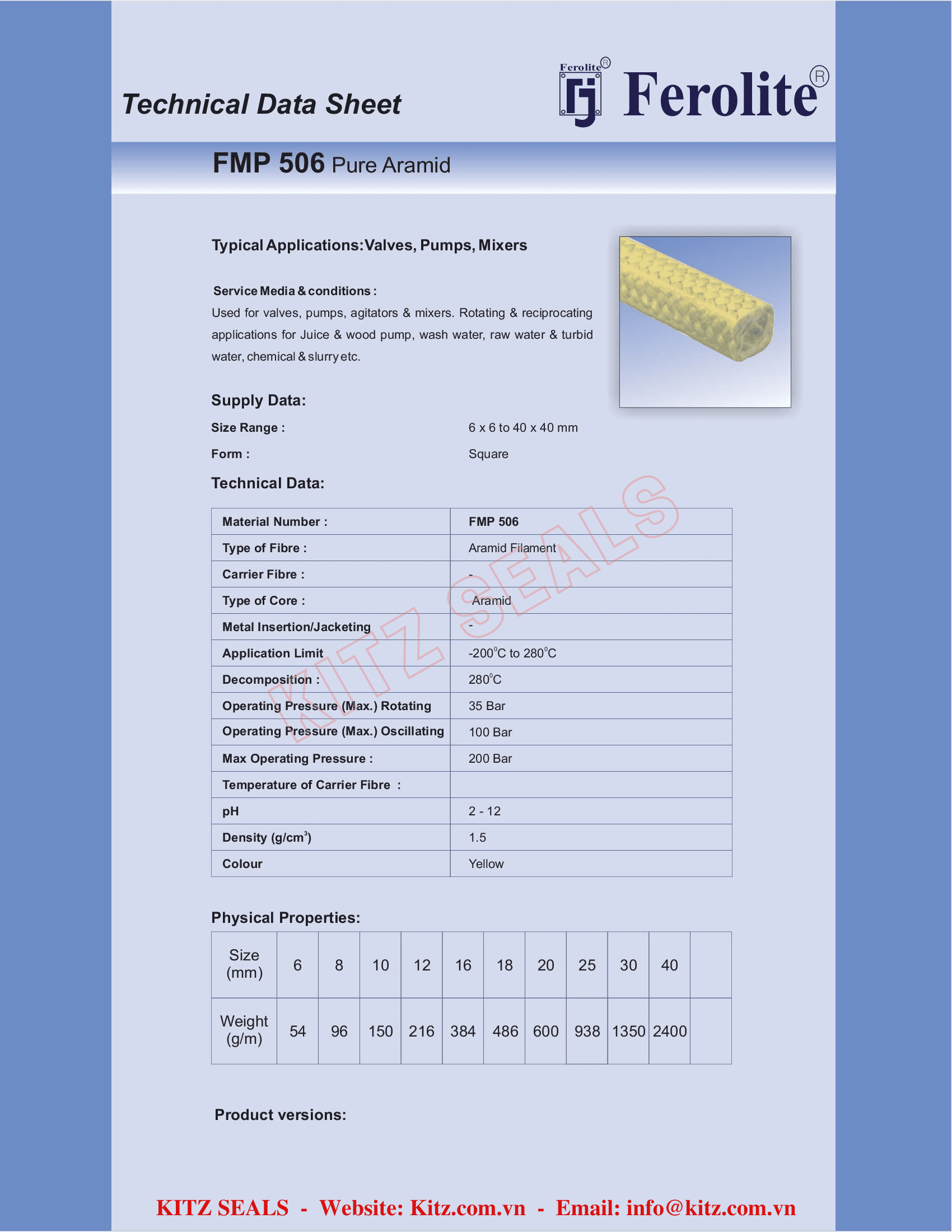 - Dây tết chèn FMP 506 được Kitz seals nhập về số lượng lớn bán với giá cạnh tranh tại Việt nam so với các hàng châu âu khác với chất lượng tương đương.