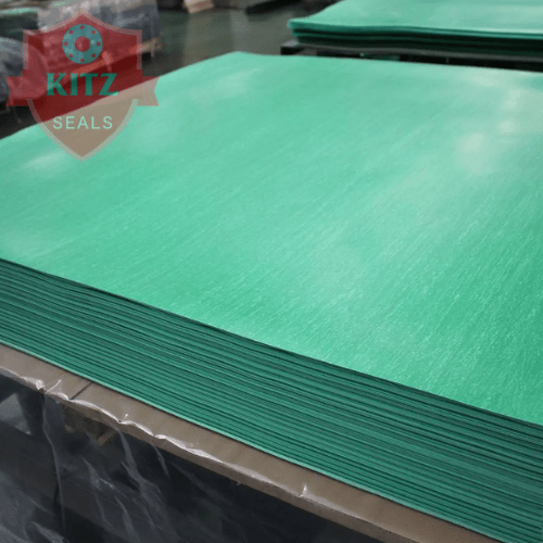 Các thành phần được trộn đều → ép nóng ở áp suất cao → cắt thành tấm tiêu chuẩn 1500×1500mm hoặc 1270×1270mm → có thể gia công theo kích thước mặt bích tùy yêu cầu khách hàng.