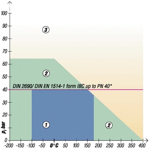 Đồ thị pT Klinger C4400 cung cấp các hướng dẫn cho việc xác định sự phù hợp của một loại vật liệu gioăng đệm gasket đặc biệt cho một ứng dụng cụ thể chỉ dựa trên nhiệt độ và áp suất hoạt động. Ngoài ra bạn cần quan tâm đến khả năng kháng hóa chất của vật liệu.